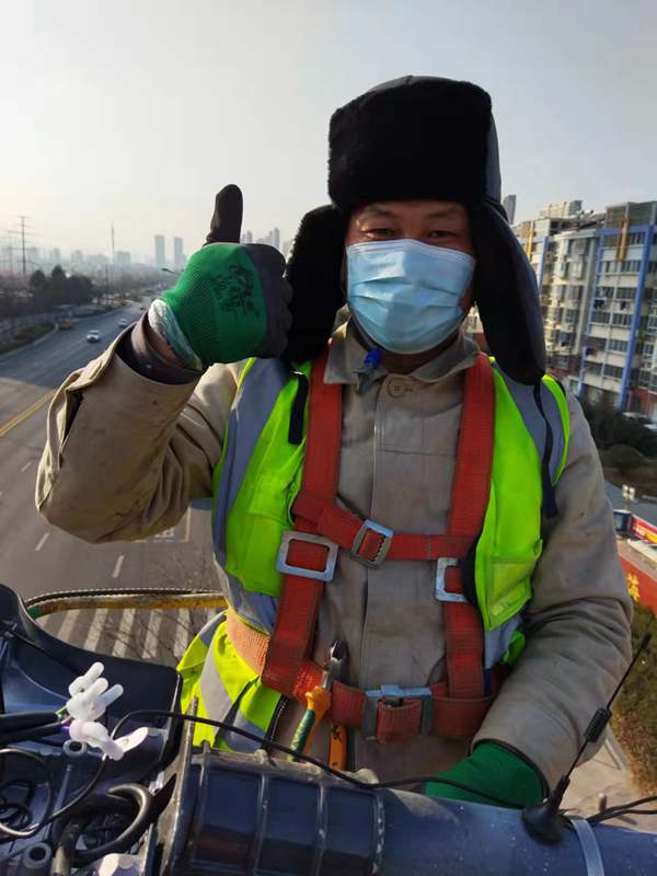 ?該項(xiàng)城市照明提升工程工程量大(約6500套路燈),工期緊。為了趕時(shí)間進(jìn)度,翔立“鐵軍”們由12月27開(kāi)始施工,日以繼夜、馬不停蹄的連續(xù)奮戰(zhàn)在工程一線,沒(méi)有一個(gè)人掉隊(duì),沒(méi)人喊苦叫累,個(gè)個(gè)都像鉚足了勁的“小牯?!薄<鐜А栋踩珕T》紅袖章的工程負(fù)責(zé)人喬以成騎著電瓶車(chē)不時(shí)地在海寧大道上來(lái)回穿梭著,“王師傅,高空作業(yè)車(chē)四條支撐臂必須支撐平穩(wěn)牢固后再提升哦”,“段青春,把前方施工的警示牌擺在車(chē)輛后面,還有道路安全錐桶一定要將作業(yè)區(qū)域圍起來(lái),與后面來(lái)車(chē)方向保持安全距離?!痹谑袇^(qū)人流密集的道路上同時(shí)有5臺(tái)登高作業(yè)車(chē)分區(qū)域高空作業(yè)的情況下,他最放心不下,畢竟是高空作業(yè)!為了防止高空墜落,登高施工操作人員全部按要求規(guī)范佩戴安全帶、系好安全繩、絕緣鞋、防寒安全帽、警示馬甲一應(yīng)俱全,武裝整齊。為防高空落物,作業(yè)車(chē)吊籃內(nèi)使用的工具全部系上“失手繩”,安全施工是必要的前提,有措施,有辦法,畢竟千條萬(wàn)條,安全才是第一條!
