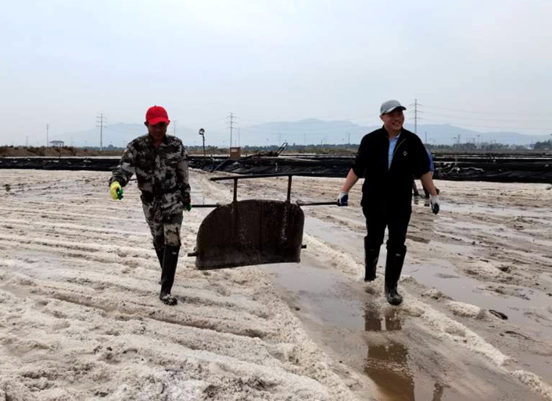 在這金秋送爽、丹桂飄香,喜獲豐收的季節(jié),當(dāng)人們還沉浸在舉國(guó)歡騰的“國(guó)慶”氛圍之時(shí),一年一度的秋季扒鹽在這片古老的鹽堿地上拉開了大幕。面對(duì)時(shí)間緊迫、生產(chǎn)任務(wù)重、人員緊缺等種種不利因素,公司黨委吹響原鹽爭(zhēng)奪戰(zhàn)集結(jié)號(hào),由領(lǐng)導(dǎo)班子帶隊(duì),機(jī)關(guān)部門及各單位的管理人員、后勤人員立下提交“請(qǐng)戰(zhàn)書”,立下“軍令狀”,馳援秋扒鹽生產(chǎn),用實(shí)踐踐行“兩在兩同”活動(dòng)要求,黨員干部與職工群眾想在一起、干在一起。