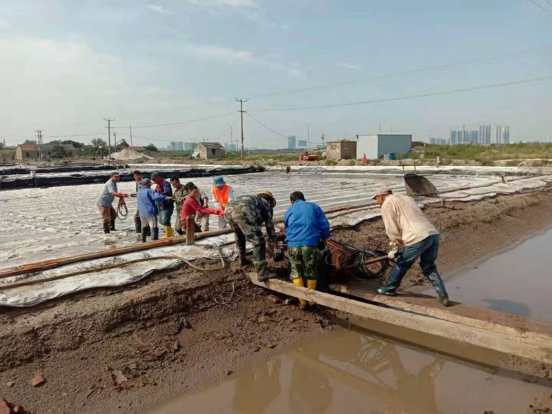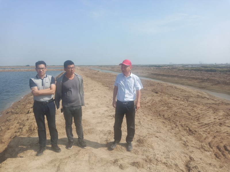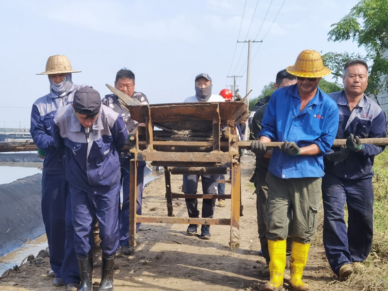 養(yǎng)殖池邊,工作人員仔細(xì)的對(duì)河道清淤進(jìn)行現(xiàn)場勘查,確保排水通暢。