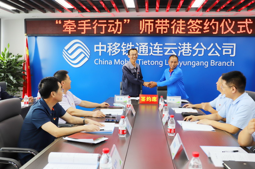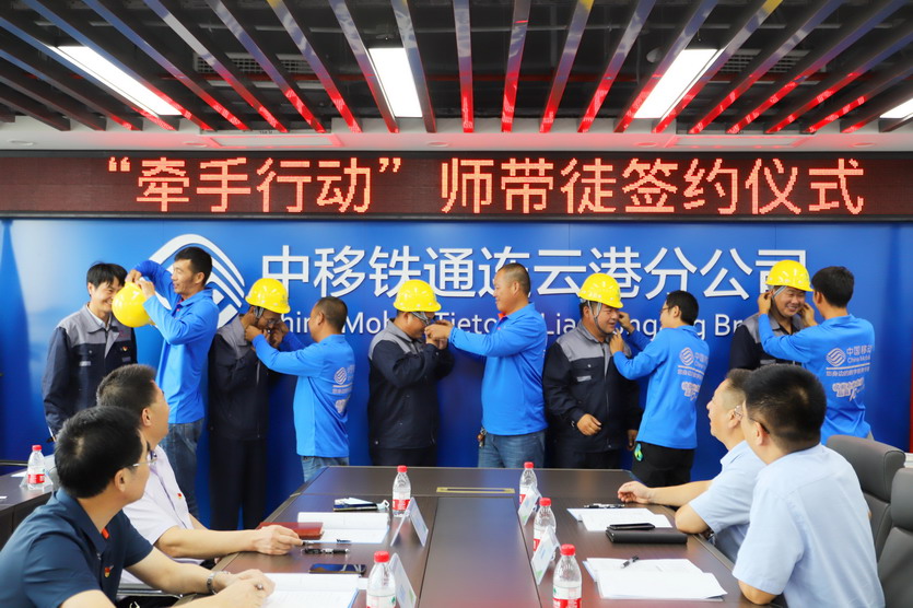 ? ? ? ? “黨建和創(chuàng)”是臺北投資公司、中移鐵通連云港分公司基于產(chǎn)業(yè)轉型戰(zhàn)略合作的黨建保障工程?!盃渴中袆印睅熗浇Y對是公司按照建設知識型、技能型、創(chuàng)新型勞動者大軍這一目標任務,切實加強新時代產(chǎn)業(yè)工人隊伍建設,大力弘揚工匠精神,充分發(fā)揮工匠的示范帶動作用,拓展職工職業(yè)技能培養(yǎng)的重要途徑。通過師帶徒方式培養(yǎng)通信工程技術人員,為公司在推進通信工程業(yè)務承接中建隊伍,打基礎,推進新一輪產(chǎn)業(yè)轉型走的更堅實、堅定,為公司高質(zhì)快速發(fā)展增添新動力。