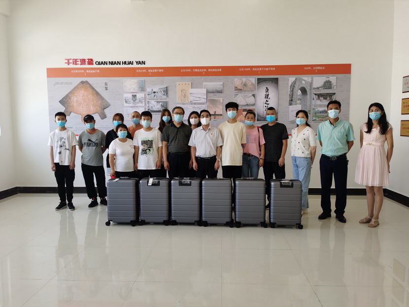 情系學(xué)子,圓大學(xué)夢。在莘莘學(xué)子高考收獲的季節(jié),8月25日上午,臺北投資公司工會關(guān)愛單位職工子女成長,把溫暖送給每一位取得大學(xué)錄取通知書的職工子女。對郁洪剛、伏廣好、惠志平、孫敏等6名考上大學(xué)、研究生的職工子女進(jìn)行慰問,為他們各贈送一只行李箱,方便學(xué)子入學(xué)時放生活用品及學(xué)習(xí)用品。