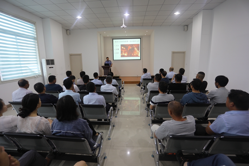 董教員結(jié)合近年來(lái)出現(xiàn)的各種火災(zāi)事故典型案例,對(duì)火災(zāi)發(fā)生的常見(jiàn)原因、報(bào)警時(shí)應(yīng)注意的問(wèn)題、各類(lèi)型火場(chǎng)中特色的逃生技巧、以及如何組織人員疏散,火場(chǎng)自救方法及滅火器的使用、車(chē)輛電器火災(zāi)的特色處理等知識(shí)進(jìn)行了深入淺出的講解,通俗易懂地給大家上了一堂消防安全課。