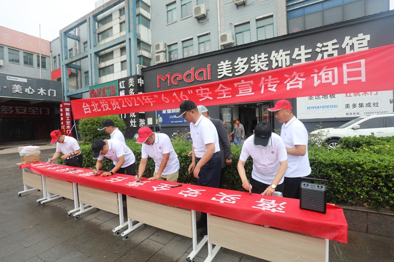 今年6月是第20個全國安全宣傳月。6月16日,投資公司領導班子全員參加,圍繞“落實安全責任,推動安全發(fā)展”主題,組織20余名安全管理人員在光伸建材廣場開展“6.16安全生產(chǎn)宣傳咨詢日”活動。