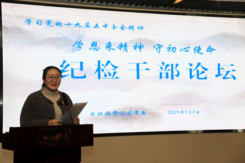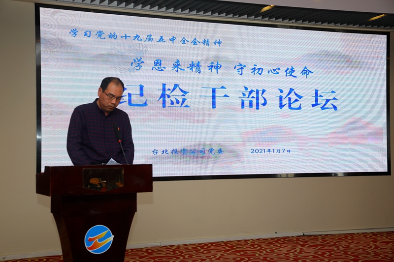 “感受偉人風(fēng)范,踐行初心使命……”從臺北投資公司十樓會議室里傳來鏗鏘有力的演講聲。為深入推進“學(xué)恩來精神、守初心使命”專題教育活動,鍛造忠誠干凈擔(dān)當(dāng)?shù)?/span>紀檢干部隊伍,1月7日下午,公司舉辦紀檢干部專題大講堂。公司領(lǐng)導(dǎo)班子成員,各單位、部門中層副職以上管理人員參加了活動。