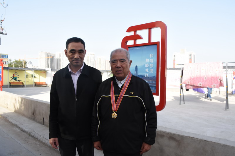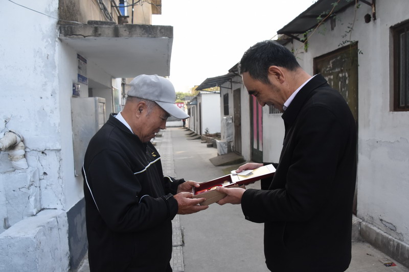 解韻波同志今年83歲,1956年1月參軍,那年19歲,同年6月經(jīng)過短期高強度培訓(xùn),作為無線電通訊兵出國抗美援朝。1959年西藏達賴集團發(fā)動叛亂,剛回國不久的解韻波作為無線電技術(shù)兵種隨即跟隨大部隊入藏平叛。至今他仍保留著抗美援朝軍功章,入藏平叛軍功章、紀念章等。1962年退伍分配至臺北鹽場工作,1997年退休。今天慰問的時候,在鄰居們的簇擁和艷羨之中,還沒進家門,鄰居們就迫不及待地要求打開“紀念章”一睹風采。紀念獎?wù)聮煸诶蠎?zhàn)士胸前,一眾鄰里夸贊不斷:這份榮譽沉甸甸的。這份榮譽是拿命換來的。這是不得了的榮譽啊。這樣的老兵是我們的寶貝哦,我們要尊敬啊。……就在小區(qū)活動廣場上,老戰(zhàn)士與大家暢談起保家衛(wèi)國光榮的戰(zhàn)斗經(jīng)歷,烽煙往事歷歷在目。退伍后,不褪軍人本色,幾十年如一日立足家鄉(xiāng)建設(shè),為臺北鹽場奉獻青春,為國家建設(shè)貢獻力量。大家對解韻波老戰(zhàn)士的革命戰(zhàn)斗和建設(shè)祖國的歷程表示由衷贊嘆和敬佩。