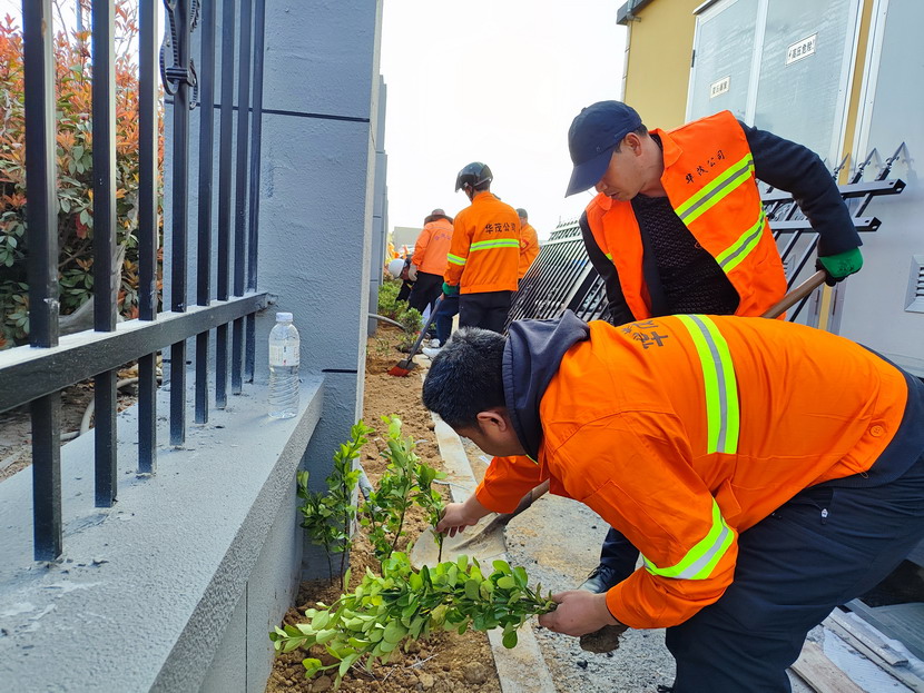 活動現(xiàn)場,在支部書記范曉寶的帶領下,大家熱情高漲、干勁十足,呈現(xiàn)一派繁忙的勞動景象。勞動中,大家兩兩一組,揮鍬鏟土、扶苗填坑、踏土夯苗,干凈利落,一氣呵成。黨員干部率先垂范,發(fā)揚不怕臟不怕累精神。經(jīng)過一上午的辛勤勞動,一株株新栽的花草苗木迎風而立,栽植的932株毛鵑、1384株黃楊在春風中展現(xiàn)勃勃生機,形成了一道綠色靚麗的風景線。