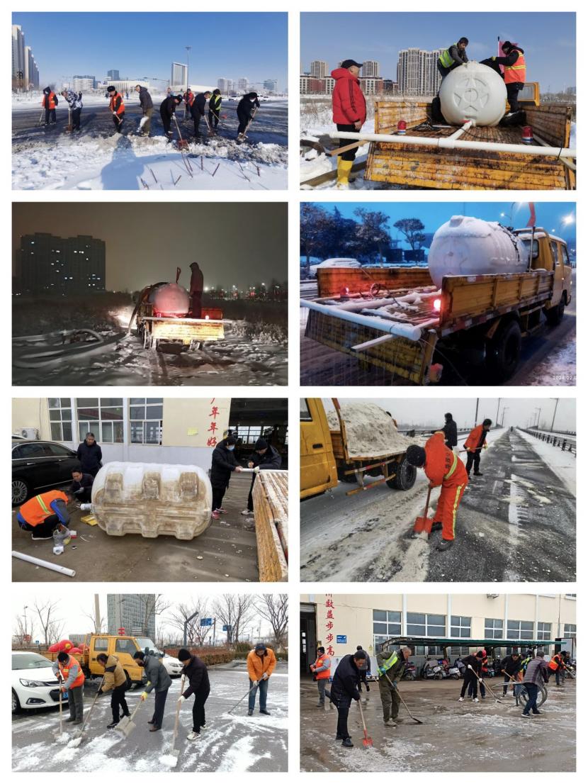 ? ? 日前,一場(chǎng)罕見(jiàn)的暴雪突襲港城,給新春送來(lái)了銀裝素裹,也為市民出行和生產(chǎn)生活帶來(lái)了不便。當(dāng)?shù)谝粓?chǎng)雪降臨開(kāi)發(fā)區(qū)之后,翔立分公司的黨員職工積極響應(yīng)投資公司黨委的號(hào)召,積極投身于掃雪除冰一線。他們來(lái)到市開(kāi)發(fā)區(qū)創(chuàng)智綠園和兄弟單位的同事們一道揮起鐵銑一銑又一銑的清除公園內(nèi)的積雪,大家伙忙活了兩個(gè)多小時(shí),終于清除了公園內(nèi)主干道上的冰雪,剛剛從安裝燈籠工程結(jié)束后還沒(méi)來(lái)得及及時(shí)休息的翔立鐵軍戰(zhàn)士們臉上露出了喜悅的笑容。