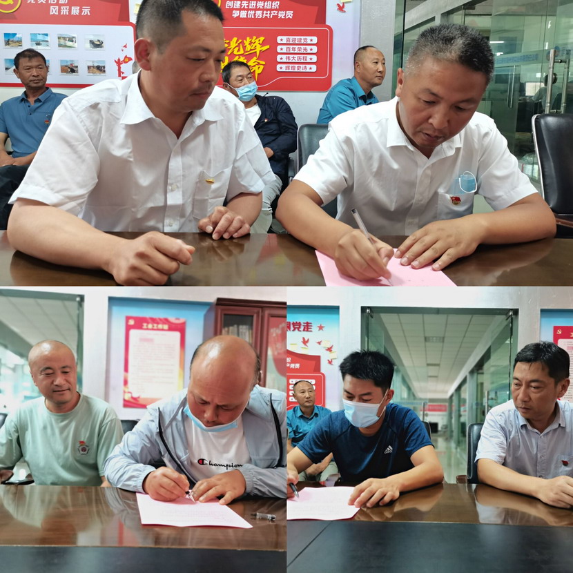 ? ? 會后,在書記工作室舉行了黨員“1+1”結(jié)對幫扶活動儀式。“名將”劉天義、“闖將”伏廣銀、“虎將”霍正鋼分別與一線鹽工朱文健、孫希學(xué)以及安全員紀鵬簽訂結(jié)對幫扶協(xié)議,霍正鋼作為幫扶者代表作黨員“1+1”共同進步宣言,他表示將通過不定期的交流,發(fā)現(xiàn)被幫扶員工思想和工作中存在的問題和不足,充分發(fā)揮優(yōu)秀黨員自身的模范帶頭作用 ,進一步激發(fā)被幫扶員工的工作熱情,真正提高工作質(zhì)量和生產(chǎn)技能,全面促進公司各項工作更好、更快的發(fā)展。被幫扶員工代表紀鵬也立即積極回應(yīng),表示平時要做到腦勤、口勤、腿勤、手勤,虛心請教,善于從日常的事物和現(xiàn)象中發(fā)現(xiàn)問題,積極主動承擔(dān)任務(wù),多思考、多實踐,盡快提高業(yè)務(wù)水平,力爭早日成為獨當(dāng)一面的骨干能手。