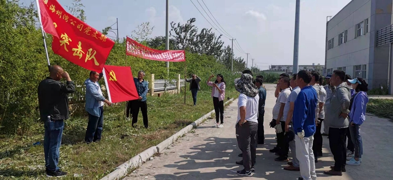 做一次突擊勞動,爭建新功。近期天氣良好,雨水充足,海州灣工業(yè)園草木瘋長。為營造一個良好的招租環(huán)境,全體黨員齊心協(xié)力,沖鋒在前當表率,充分發(fā)揮“迎難而上、勇于承擔”的黨員突擊隊精神,針對廠房周邊、園區(qū)主干道附近區(qū)域進行集中除草,經(jīng)過兩個小時的戰(zhàn)斗,園區(qū)環(huán)境面貌煥然一新,為公司下一步的招商奠定了堅實基礎(chǔ)。