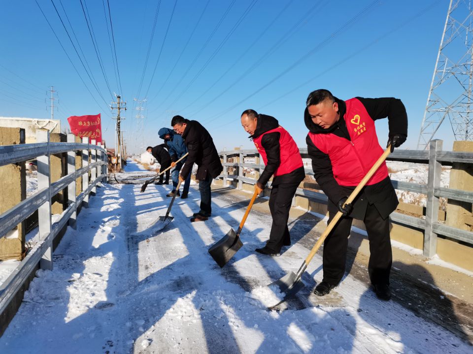 掃雪過程中,各位黨員精神飽滿、分工有序,大家揮鍬舞鏟、除雪破冰,在結(jié)冰頑固的地方撒上鹽粒進(jìn)行融化。前來辦事的海州灣公司、翔立分公司的兄弟們主動(dòng)加入,大家干的熱火朝天,充分發(fā)揮了黨員的先鋒模范作用和甘于奉獻(xiàn)的精神,勞動(dòng)的熱情和團(tuán)結(jié)的力量讓這個(gè)冬日變得格外溫暖。經(jīng)過一個(gè)多小時(shí)的共同努力,大家清掃了工區(qū)主干道和上灘必經(jīng)之路等重要路段的積雪,開辟了一條洋溢著暖心溫情的通暢之路。
