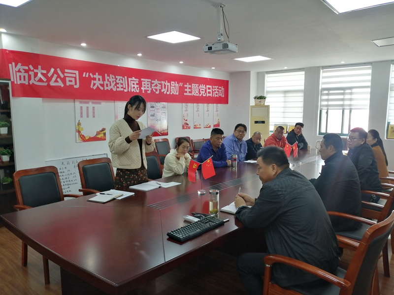 根據(jù)臺北投資公司黨委統(tǒng)一部署,10月20日,臨達黨支部邀請分管領(lǐng)導副總經(jīng)理張海寧,參加“決戰(zhàn)到底,再奪功勛”主題黨日活動。