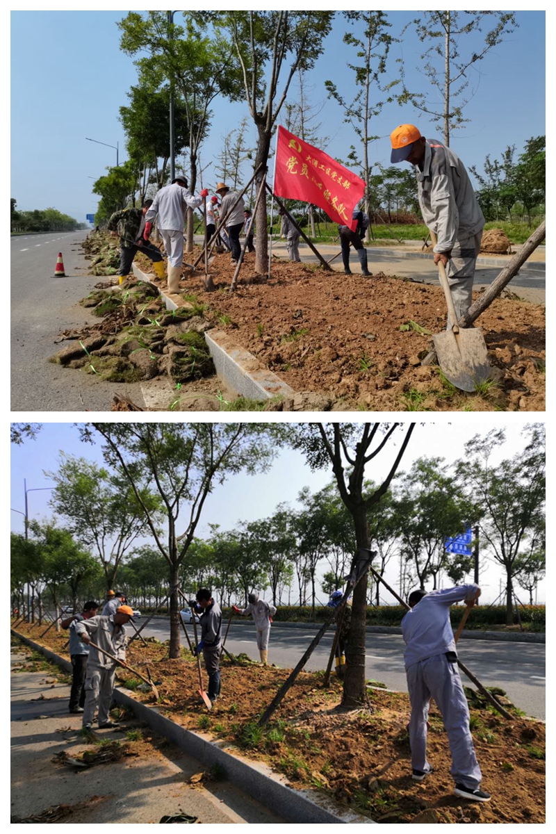 末伏天,熱浪席卷全身,太陽瘋了似的肆虐著萬物,即使是狂風(fēng)暴雨的降臨也只能緩解一時的沉悶。8月18日上午,大浦支部黨員突擊隊(duì)臨危受命,奔赴匯晶北路綠化帶助力翔立分公司突擊鋪設(shè)草皮工程任務(wù),攜手共建美麗連云港。