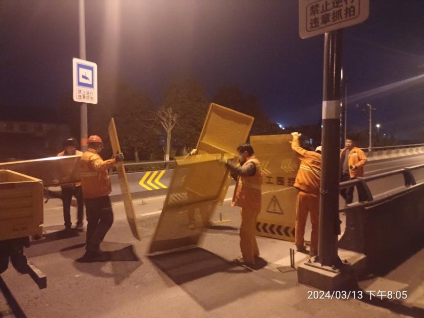 通過(guò)3個(gè)多小時(shí)的連續(xù)作業(yè),順利完成馬山立交橋兩側(cè)圍擋安裝工作,為城市按下了“安全”鍵。