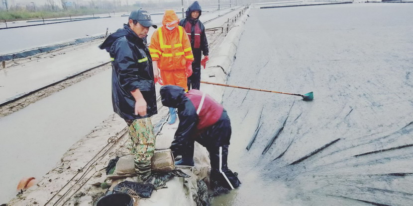 不僅僅是礦鹽班組,在海濱鈣液灘,老黨員、領(lǐng)灘手伏廣銀、董良平一直堅(jiān)守在崗,他們不僅干好自己的本職工作,在其他領(lǐng)灘手被居家管控的時(shí)刻,他們來(lái)到其他單元幫助走水以及其他日常工作,經(jīng)常一干就是12個(gè)小時(shí);在鈣液原料水儲(chǔ)備池,龔成春每天是按時(shí)按點(diǎn)到達(dá)灘地,進(jìn)行灘地巡視,做好巡視登記,沒(méi)有因?yàn)橐咔橛绊懚⒄`一天,遇上暴風(fēng)雨等惡劣天氣,他就住在值班室,每天晚上要加巡一次,保證僅有的原料水能得到最大化的利用;在鈣液銷(xiāo)售點(diǎn),程輝、徐松保響應(yīng)疫情防控應(yīng)急預(yù)案,備齊醫(yī)用口罩,酒精,消毒液等防疫物資,每天對(duì)前來(lái)的鈣液運(yùn)輸車(chē)進(jìn)行消毒,對(duì)司機(jī)進(jìn)行體溫測(cè)量、“三碼”登記,確保鈣液銷(xiāo)售安全有序。