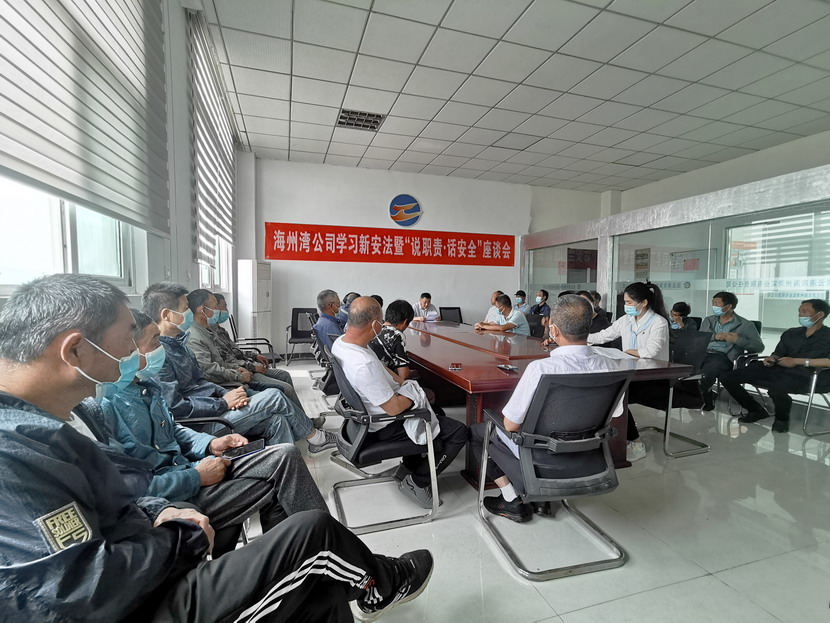 為認(rèn)真貫徹落實(shí)《新安全生產(chǎn)法》,6月14日,海州灣公司開展學(xué)習(xí)新安法暨“說(shuō)職責(zé)·話安全”座談會(huì),公司管理人員、一線職工參加活動(dòng)。