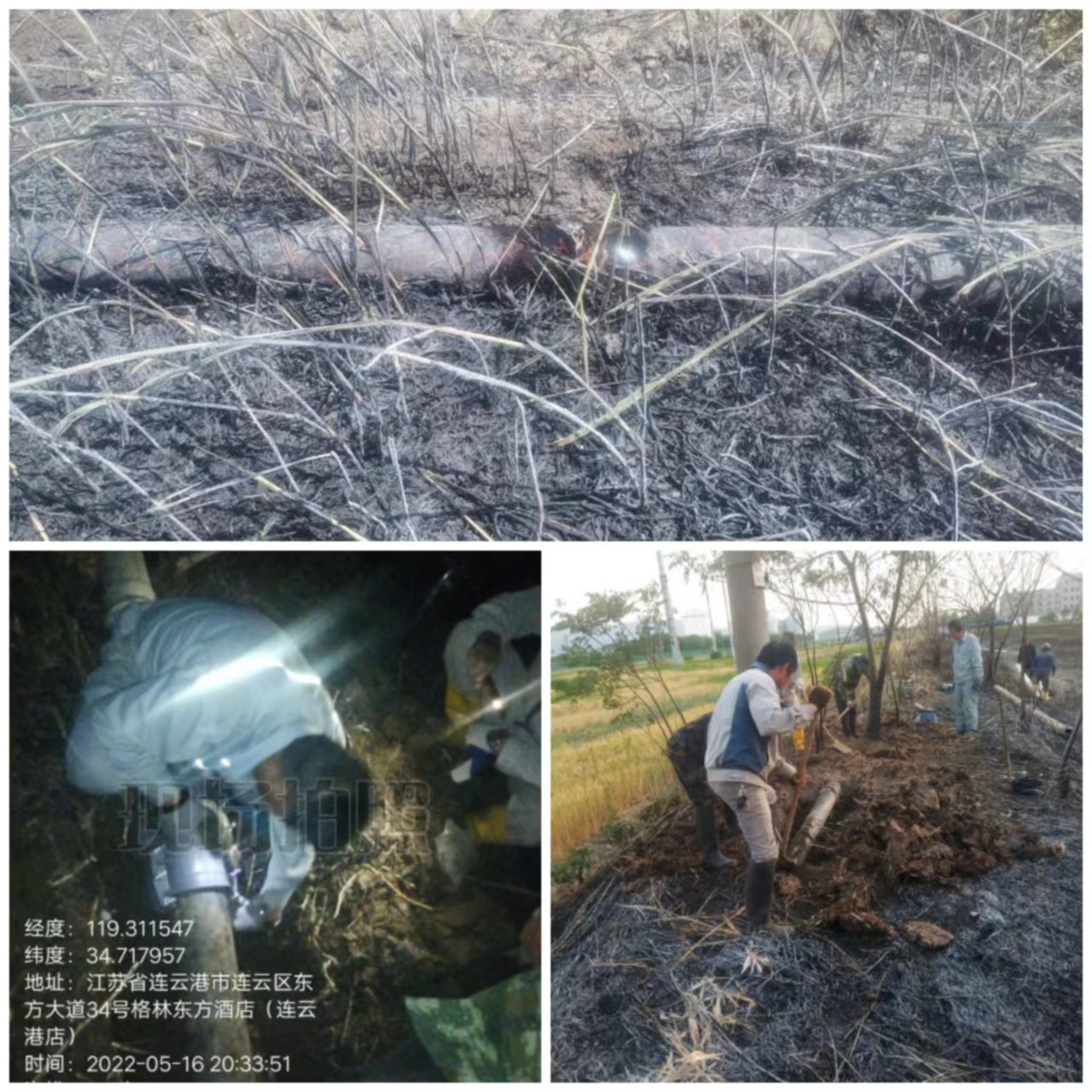 5月16日中午12點(diǎn)半左右,東方大道與新光路交叉處蘆葦蕩突發(fā)大火,海州灣公司近300米礦鹵管道正埋于此處。大火發(fā)生后,管道突發(fā)性爆裂,導(dǎo)致昌圩班組不能正常灌池,公司立即組織十余名搶修人員,迅速集結(jié)奔赴現(xiàn)場,火速開展搶修工作。