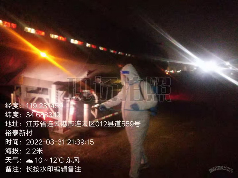 3月31晚8點48分,海州灣公司組織人員對鹽城來企的鈣液運輸車輛進行消殺,對駕駛?cè)藛T查驗蘇康碼、行程碼、核酸記錄,登記到廠時間、車牌、始發(fā)地、所運物資等一系列車輛運輸信息,并拍攝包含時間、車牌、封條的全方位照片上傳閉環(huán)管理系統(tǒng)。