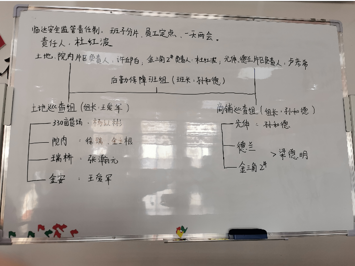 全面壓實安全管理責(zé)任。建立全員安全責(zé)任清單,實施“重大安全風(fēng)險公告”“崗前一分鐘培訓(xùn)”等措施,成立土地、商鋪兩個安全巡檢小組,形成“每日目標上墻,每日隱患匯總,每日強化整改”工作體系,切實提升員工的安全素質(zhì)和管控能力。