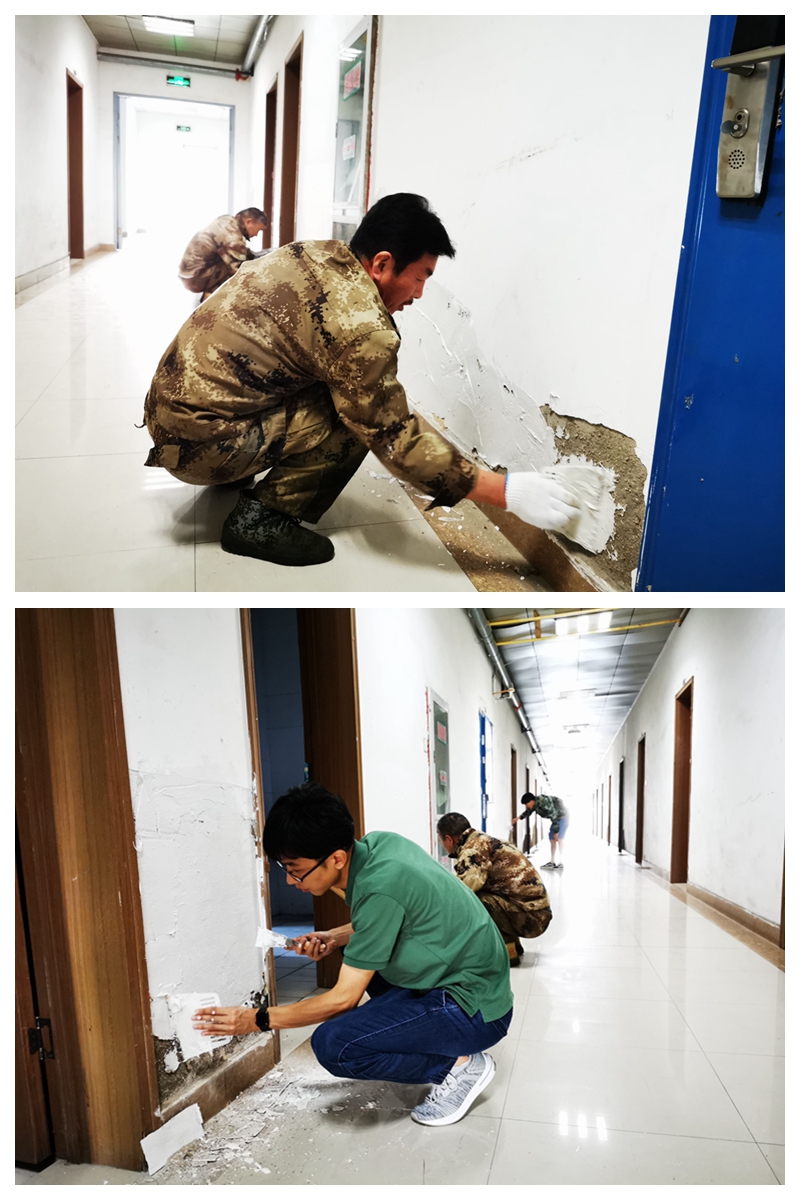 美多利公司綜合辦公樓一樓由于空氣潮濕,墻體大多墻皮剝落,不僅影響美觀,還會污染環(huán)境,給公司形象造成了一定影響。今天上午,為美化園區(qū)辦公環(huán)境,優(yōu)化園企職工的辦公體驗,美多利公司全體職工“擼袖上陣”,鏟除綜合辦公樓墻面剝落的墻皮,并重新涂刮墻面石膏,使原本斑駁的墻面煥然一新。
