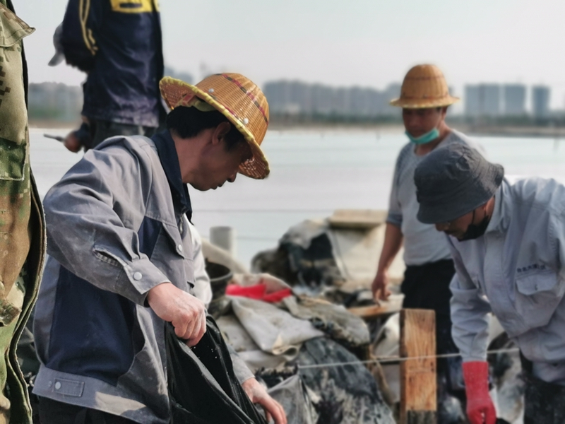 “比武”現(xiàn)場(chǎng)一片忙碌,各位“比武勇士”都是鹽灘的行家里手,共28名,分成4組,每組7人,在規(guī)定兩小時(shí)內(nèi)完成塑布安裝。“比武”過(guò)程中,每組成員通力合作、一絲不茍,從嚴(yán)控制好每一道安裝工序和環(huán)節(jié),拼速度、比規(guī)范,確保安裝的塑布在使用中得心應(yīng)手。