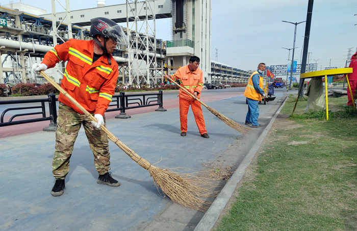 保潔保障“步調(diào)一致”。為完成徐新路、徐圩大道、海濱大道等石化園區(qū)多條道路保障任務(wù)。130余名“保潔先鋒”輪流轉(zhuǎn),每日清掃輔道路修剪石楠等樹(shù)葉雜草落葉路線1500米、清洗站臺(tái)座椅40余個(gè)、清掏果皮箱130余個(gè)、轉(zhuǎn)運(yùn)生活垃圾300袋、打包轉(zhuǎn)運(yùn)商鋪垃圾150余車(chē),為保障節(jié)日期間道路保潔鍥而不舍。