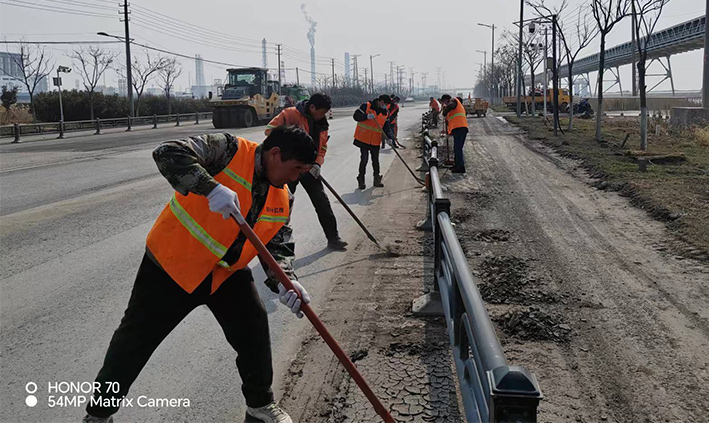 3月15日,該分公司近15余名黨員突擊隊(duì)員,在黨支部號(hào)召下,無(wú)視春光照曬、三人一組、兩個(gè)一對(duì)、揮動(dòng)手中鐵銑,無(wú)懼泥土揚(yáng)塵四起,清除蘇海路,港前卡口護(hù)欄下車輛拋灑泥土2000多米長(zhǎng),人工清掃護(hù)欄內(nèi)石子30多處,車輛轉(zhuǎn)運(yùn)20多車。黨員陳小軍、陳海彬等同志盡管手磨破了,仍然堅(jiān)守道路最前沿,經(jīng)過(guò)30余名隊(duì)員兩天持續(xù)奮戰(zhàn),整潔靚麗的路面再次展現(xiàn)石化園區(qū)。