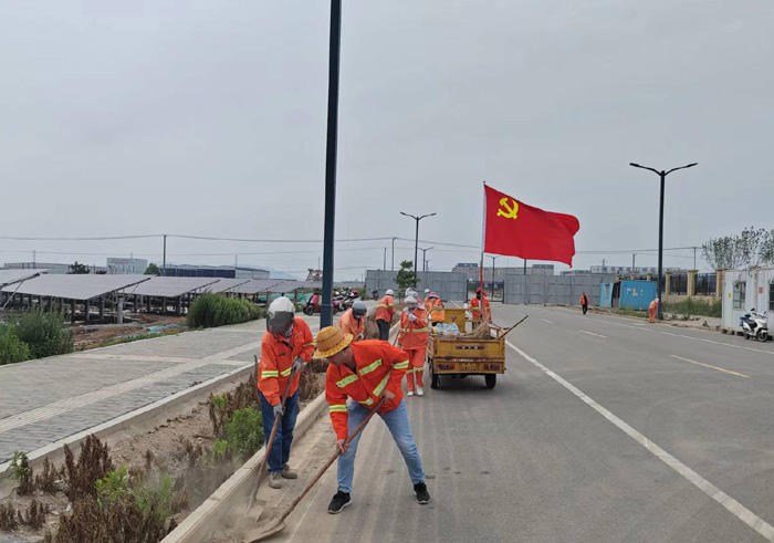 621日,該黨支部近30余名黨員在支部的感召下,匯集于新區(qū)節(jié)能一路道路兩邊。勞動(dòng)現(xiàn)場(chǎng),黨員生產(chǎn)骨干姚功身先士卒,無(wú)懼泥土粉塵揚(yáng)起,揮汗清理,不怕臟、不怕累,不放過(guò)任何衛(wèi)生死角。勞模張學(xué)軍與老黨員徐習(xí)東相互配合,打包,裝車, 及時(shí)轉(zhuǎn)運(yùn)各類垃圾達(dá)50多袋,清掃路面積土近1500米長(zhǎng),大家分工明確,重活臟活搶著干。隊(duì)員們齊心協(xié)力,用實(shí)際行動(dòng)詮釋黨員吃苦在前、勇于擔(dān)當(dāng)?shù)姆瞰I(xiàn)精神。經(jīng)過(guò)四個(gè)多小時(shí)清理,主干道及周邊道路垃圾、雜草、泥土全部清理干凈,高質(zhì)量完成奉獻(xiàn)勞動(dòng),鮮艷的黨旗在陽(yáng)光的照耀下顯得格外閃亮。(楊波)