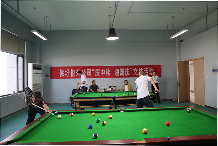 近日,在中秋、國慶雙節(jié)來臨之際,悅升公司工會(huì)在全公司范圍內(nèi)開展臺(tái)球、摜蛋比賽。旨在不斷豐富職工業(yè)余文化生活,渲染濃厚的節(jié)日氛圍,悅升公司全體干部職工參加了本次活動(dòng)。