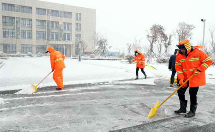 2月1日起,持續(xù)降雪,導(dǎo)致環(huán)衛(wèi)運(yùn)營管理中心道路上覆蓋著厚厚的積雪和凍冰,嚴(yán)重影響應(yīng)急救援車輛的出行,悅升機(jī)關(guān)突擊隊(duì)“以雪為令”,迅速集結(jié),對環(huán)衛(wèi)指揮中心院內(nèi)和徐新路開展集中清理積雪工作,確保城市道路交通正常運(yùn)轉(zhuǎn)。