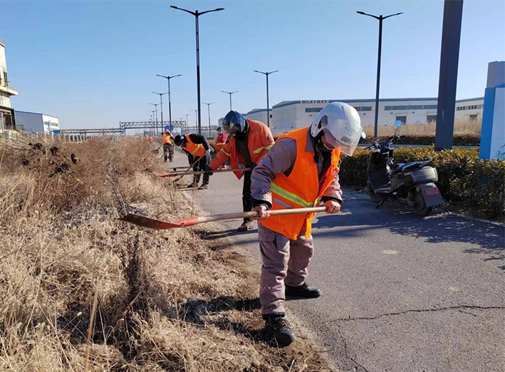 該分公司園區(qū)兩個(gè)班組近35名保潔勇士,無(wú)懼低溫刺骨天氣,匯聚石化十路、石化三道道路兩側(cè)。勞動(dòng)現(xiàn)場(chǎng),黨員骨干示范帶頭作用處處體現(xiàn)。石峰、朱海勇、楊靜身背幾十斤重打草機(jī),無(wú)所怨言,持續(xù)工作時(shí)長(zhǎng)達(dá)三個(gè)多少時(shí)。在他們的帶動(dòng)下,班組人員一字排開(kāi),分工明確,各負(fù)其責(zé)。