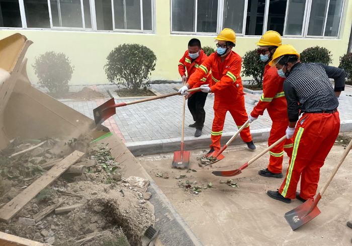 面對繁重工作量,為了切實加快施工進度,悅升公司黨員干部主動請纓要求到一線與大家共同奮戰(zhàn)。“不要急,要嚴格施工流程,確保工程質量達標……”該公司負責人馮如師邊說邊邊將工程垃圾裝運到車上。截止當前,該公司班子成員帶領機關工作人員堅守陣地,持續(xù)工作了17日。為確保高質高效完成各項工程任務,大家“白加黑”晝夜不間斷的全力奮戰(zhàn),已完成瀝青路面攤鋪1.7萬m2、園路鋪設3000m2、路緣石安裝1660m、樹池圍牙砌筑1136m、更換下水道篦子130塊……各項工程任務完成接近尾聲。