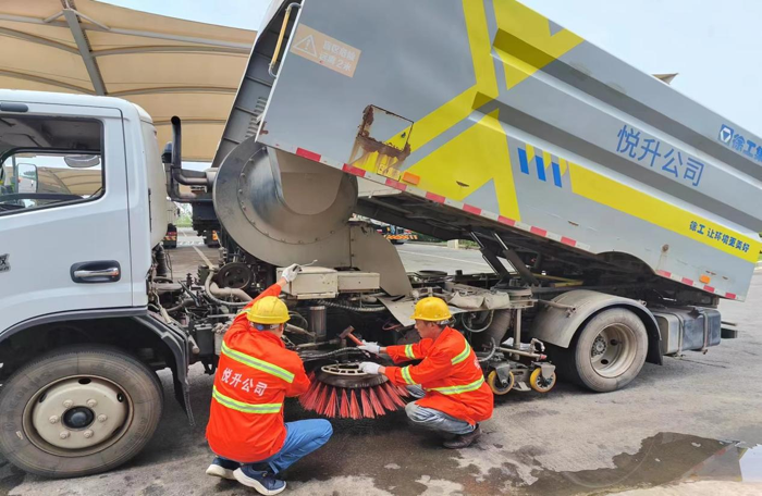 ? ? ? ?連日來,持續(xù)高溫,酷暑難耐。悅升公司車輛維修班組始終堅守崗位,他們用汗水確保公司所有作業(yè)車輛、設(shè)備設(shè)施正常運(yùn)行,盡全力保障環(huán)衛(wèi)生產(chǎn)車輛的出勤率,為公司安全生產(chǎn)做好后勤保障工作。