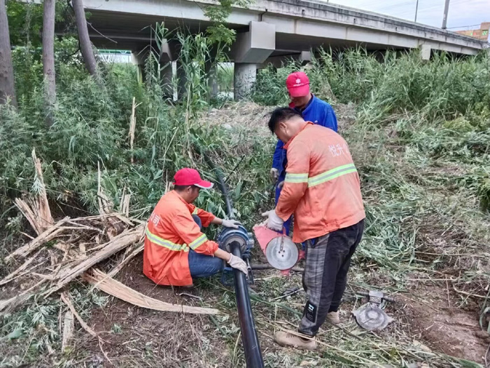 ? ? ? ?供水組接到任務(wù)后,積極采取措施,切實(shí)解決用水問題??紤]到原管網(wǎng)承壓脆弱,為避免造成水資源的浪費(fèi),針對性對加水點(diǎn)上游老化管道進(jìn)行更換改造。在施工過程中,由于安裝管道在野外作業(yè),施工環(huán)境較差,隊(duì)員要在一人高蘆柴地里來回穿梭,進(jìn)行管道布設(shè)、管道熔接,加上室外溫度達(dá)到35度以上,灼熱感、蚊蟲叮咬讓隊(duì)員們相當(dāng)難受,隊(duì)員季小東、劉佃寶脖子已經(jīng)出現(xiàn)紅腫,率先領(lǐng)到“紅包”。供水班組全體人員埋頭苦干,毫無怨言,克服天氣及環(huán)境不利因素影響,搶時間、抓進(jìn)度,經(jīng)過3日全力奮戰(zhàn),順利完成此次管道更新改造任務(wù)。此次安裝作業(yè),已對326米老舊管道進(jìn)行了更換,加裝直徑100閘閥2個、直徑100水表1只、100*65型地上式消火栓1個。(楊維軍)