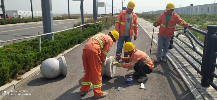 維修班組成員經(jīng)過多日實地考察,結(jié)合道路現(xiàn)場實際情況制定了維修計劃,并對部分道路上擋車樁點位、間距設(shè)置進(jìn)行了合理調(diào)整,來規(guī)避擦碰現(xiàn)象發(fā)生。在石化三路一處施工現(xiàn)場,兩組隊員頂著炎炎烈日正在非機動車道上進(jìn)行擋車柱安裝工作,他們配合默契,利用開孔鉆、鐵锨等工具開孔、清掏、埋設(shè)樁柱,然后用混凝土填充、壓實地下部分,最后整平路面。安裝好之后將有效阻止機動車隨意占用人行通道,達(dá)到安全目的。本次施工共安裝維修擋車柱36個、穩(wěn)固球狀擋車石約180多處。