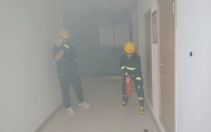 本次演練模擬公司辦公樓三樓電纜井因電路故障引發(fā)火情組織職工開展應急疏散。 “起火啦!”15時許,辦公樓三樓一電纜井內(nèi)突然涌出滾滾濃煙。臨近人員發(fā)現(xiàn)著火后,第一時間使用滅火器進行撲救。濃煙觸發(fā)自動報警裝置,消防控制室值班人員接到警報后,立即通知志愿消防隊伍趕赴現(xiàn)場撲救,并撥打報警電話,向應急指揮部報告。公司應急指揮部立即啟動應急預案,滅火搶救組、安全救護組、緊急疏散組等應急小組隨即到位,有條不紊開展滅火、疏散等工作。消防救援隊伍到達現(xiàn)場后,接過現(xiàn)場指揮權(quán),開展滅火救援。安全搶救組搜索受傷人員,并對受傷人員簡單急救后送往醫(yī)院進行治療,緊急疏散組立即組織辦公大樓人員,用濕毛巾捂住口鼻從應急通道撤離。10分鐘后,險情排除,應急救援結(jié)束。最后,組織部分人員開展滅火實操演練